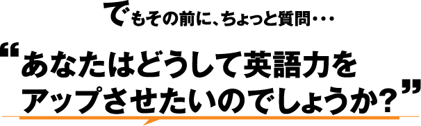 多くの英語スクールでは、まずTOEICのスコアをあげて…とか、一般英会話を学んで…など、